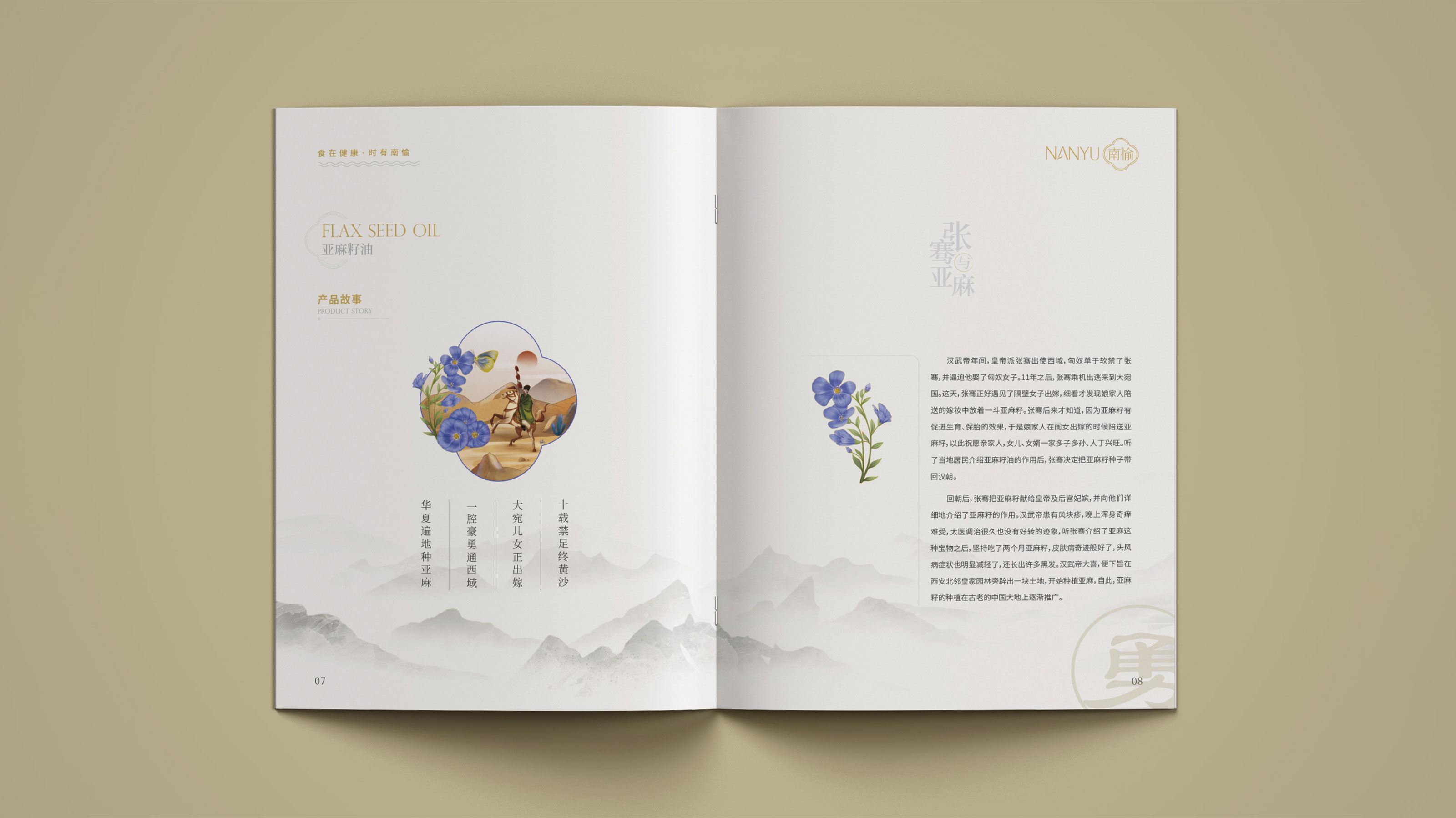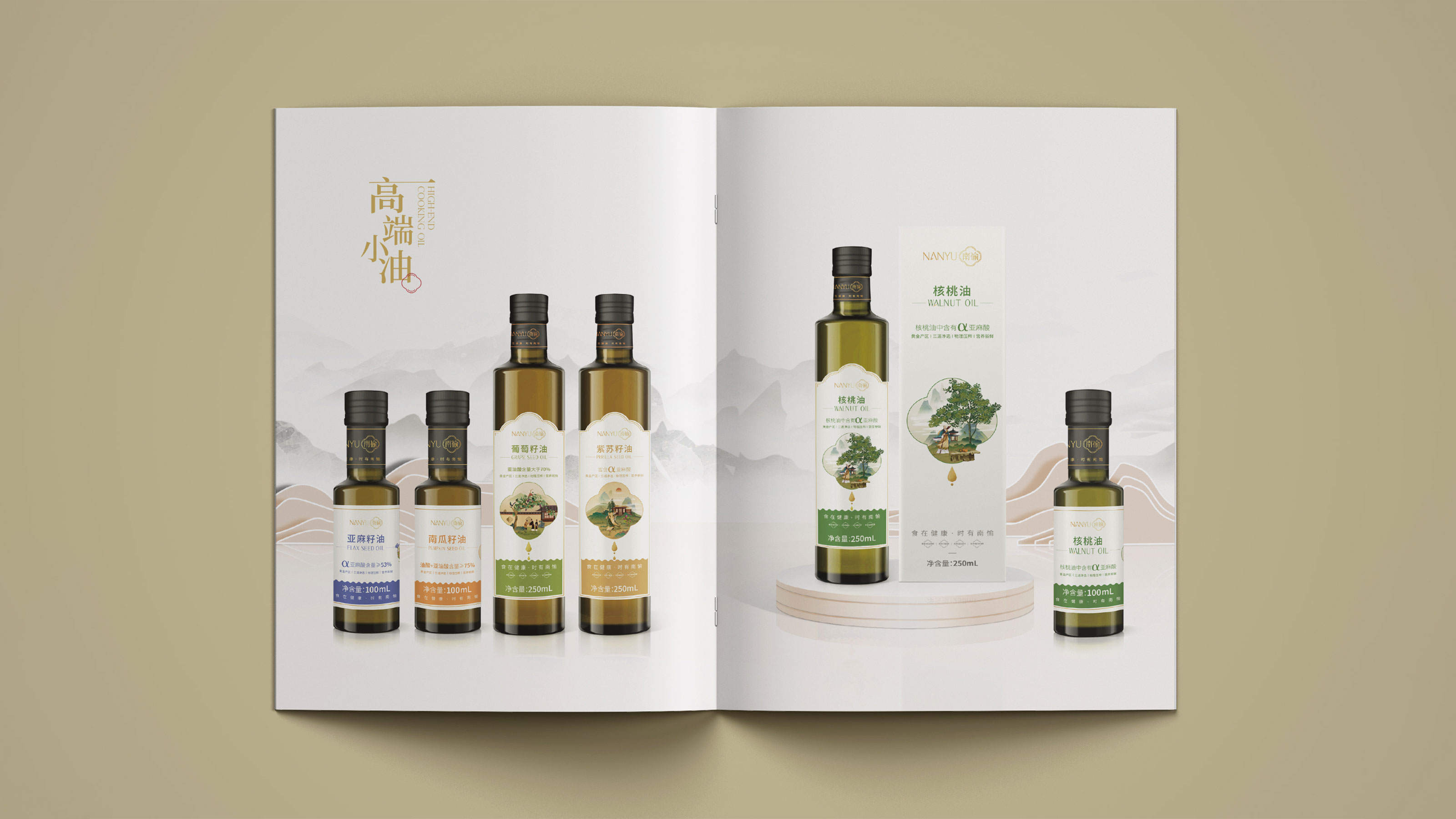 畫冊是企業(yè)及產(chǎn)品宣傳的重要表現(xiàn)形式之一,為更能夠突出展現(xiàn)南愉品牌的形象,石特進(jìn)行了深入的思考。在畫冊的設(shè)計中,石特結(jié)合南榆自身的品牌定位以及產(chǎn)品特性,決定將中國傳統(tǒng)文化融入其中。封面采用金色字體描出品牌logo和定位語,簡潔大氣,到了講品牌故事的頁面,一個原創(chuàng)手繪插畫故事進(jìn)入你的視線,令人欣喜的是,故事中人物的舉手投足之間滿是傳統(tǒng)禮儀的縮影,這與南愉的“以禮相待”非常契合,這還不夠,在后續(xù)品牌文化的闡釋以及產(chǎn)品的介紹中,傳統(tǒng)水墨作為背景點(diǎn)綴其中,無一不顯現(xiàn)傳統(tǒng)文化的獨(dú)特魅力,圖文的排版輕松自然,提升了人們對葡萄籽油、核桃油以及亞麻籽油產(chǎn)品的閱讀興趣,將“食在健康,時有南愉”體現(xiàn)的淋漓盡致。