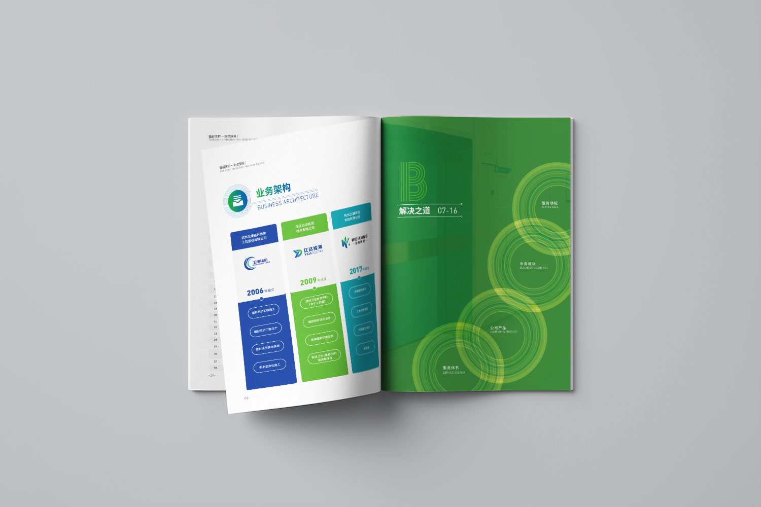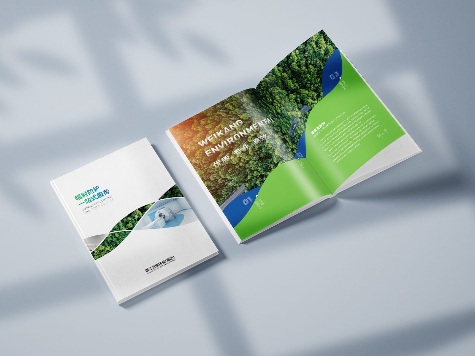 衛康環??萍迹瘓F)是一家集設計、研發、生產、銷售于一體的綜合型環??萍脊?。根據傳播思路和實際用途,宣傳冊整體內容編排有以下兩種思路:方案一:以突出企業“專業服務、一站式解決方案”為出發點,向受眾傳達企業服務的綜合能力、專業能力,突出“輻射防護一站式服務”的主題定位;方案二:以“企業形象及綜合實力展示”為突破口,通過對企業綜合實力的立體展示,凸顯企業專業、務實、可靠的整體形象,強化受眾的品牌認知。