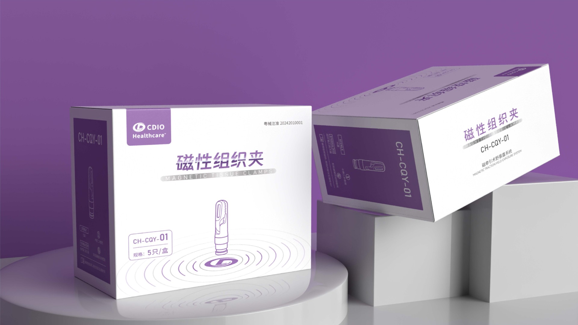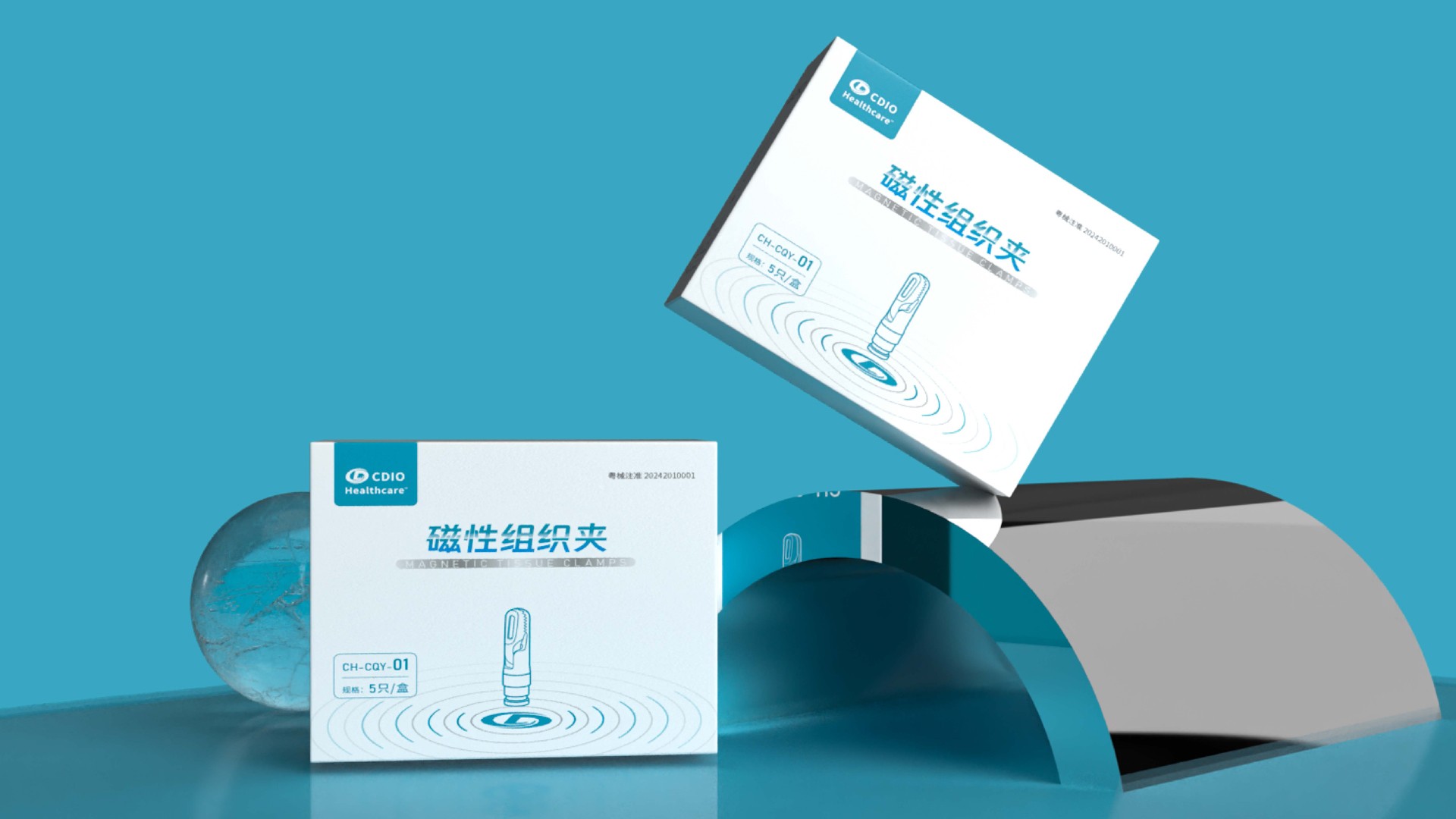 線性插畫:磁性組織夾以線性的方式呈現,以確保主要信息清晰可見。圖像的線條簡潔、現代,與醫療領域的創新精神相平應。