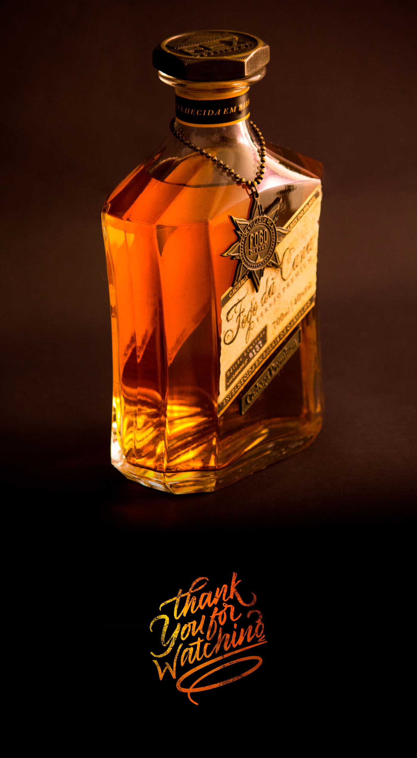 品牌的標志是經過精心設計的充滿復古感的字體,為了突出巴西高檔酒的尊貴,我們為它的包裝設計了獨特的瓶形和木箱。此外,這款高檔酒數量有限,是限量版,所以每個產品標簽上都有編號,并已完成燙金工藝,個性化地定制金屬蓋、精心制作的金屬標志垂飾以及酒本身火焰般的色彩都使包裝更加奢華和復古,豐富了產品的展示。