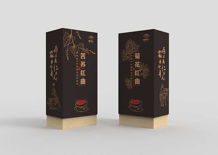 紅曲系列是敬存仁生產(chǎn)產(chǎn)品中的一個(gè)系列,它有苦蕎紅曲和菊花紅曲,石特為它做了全面的包裝策劃。這個(gè)系列產(chǎn)品仍然延續(xù)其它系列產(chǎn)品風(fēng)格采用全原創(chuàng)手繪設(shè)計(jì),該系列下兩款產(chǎn)品整體風(fēng)格相同,不同產(chǎn)品名字手繪不同植物的形狀加以區(qū)分,這樣整體顯得統(tǒng)一而又便于區(qū)分。