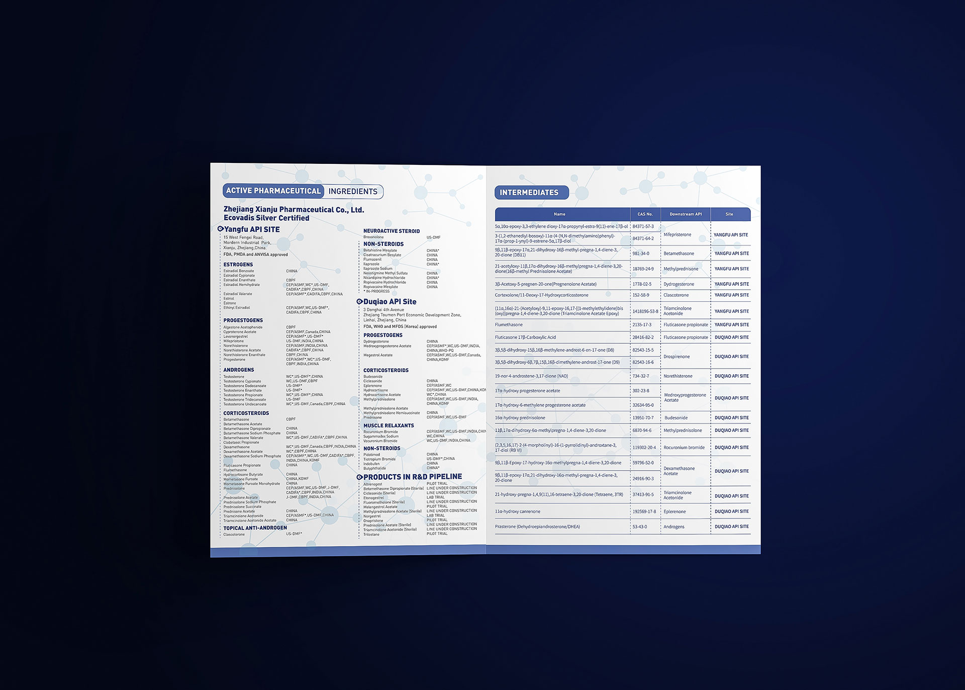 本項目是石特大健康為浙江仙琚制藥股份有限公司策劃設(shè)計的系列藥品原料藥外銷宣傳DA折頁。與面向終端患者或臨床醫(yī)生的設(shè)計不同,原料藥宣傳品的核心受眾是國際制藥公司的采購決策者、質(zhì)量部門及研發(fā)人員。我們的核心任務(wù)是為仙琚制藥的多種原料藥打造一套專業(yè)、嚴(yán)謹(jǐn)、且符合國際規(guī)范的技術(shù)營銷工具,旨在全球供應(yīng)鏈中清晰展示其產(chǎn)品在質(zhì)量、合規(guī)、工藝及供應(yīng)鏈穩(wěn)定性等方面的核心優(yōu)勢,建立深度信任感,從而在激烈的國際競爭中贏得合作機會。