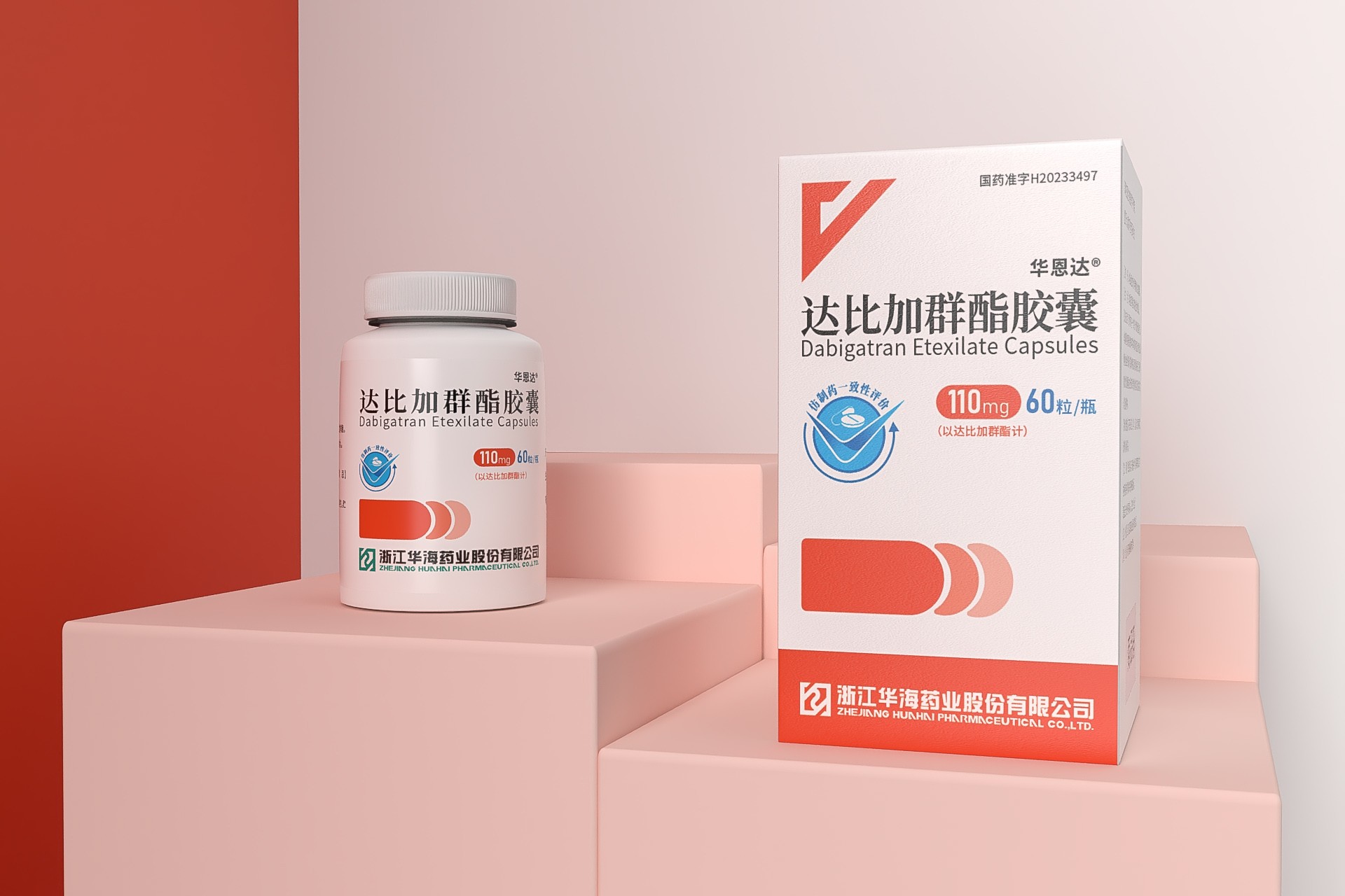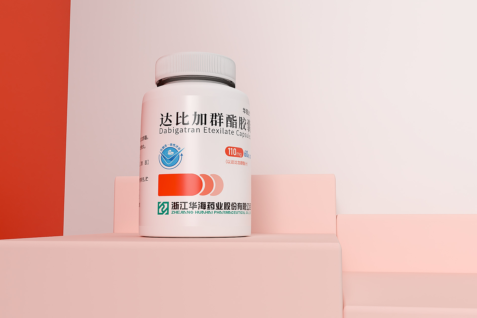 包裝設計特點 色彩運用: 達比加群酯膠囊的包裝盒采用了粉紅色和灰色相間的條紋作為背景,這種設計不僅美觀大方,還能在視覺上給人一種舒適、溫馨的感覺。同時,粉紅色和灰色都是較為中性的顏色,不會過于刺眼或單調,符合藥品包裝的審美要求。 文字排版: 包裝盒正面中央的白色文字“達比加群酯膠囊”字體清晰、大小適中,易于閱讀。下方標注的藥物名稱“Dabigatran Etexilate Capsules”以及劑量“110mg/60粒”同樣采用了清晰易讀的字體,方便患者了解藥品的基本信息。 標志設計: 包裝盒左上角的白色標志中,紅色的V形圖案和“華海藥業”字樣相得益彰,不僅突出了企業的品牌形象,還增強了藥品的可信度。標志的設計簡潔明了,符合現代審美趨勢。 整體風格: 整個包裝盒的設計簡潔現代,以白色為主色調,配以紅色和灰色的點綴,營造出一種專業和可靠的感覺。這種設計風格不僅符合藥品包裝的規范,還能提升藥品的檔次和形象。 三、信息傳遞與品牌形象 信息傳遞: 包裝盒上詳細標注了藥品的名稱、劑量、批準文號(國藥準字H20233497)、生產廠家(浙江華海藥業股份有限公司)等信息,方便患者和醫務人員了解和使用。同時,包裝盒上的文字排版清晰明了,避免了信息混淆和誤解的情況發生。 品牌形象: 通過簡潔現代的包裝設計和清晰易讀的信息傳遞,達比加群酯膠囊的藥品包裝成功塑造了企業專業、可靠的品牌形象。這種品牌形象不僅有助于提升患者對藥品的信任度和滿意度,還能為企業帶來更好的市場口碑和競爭力。